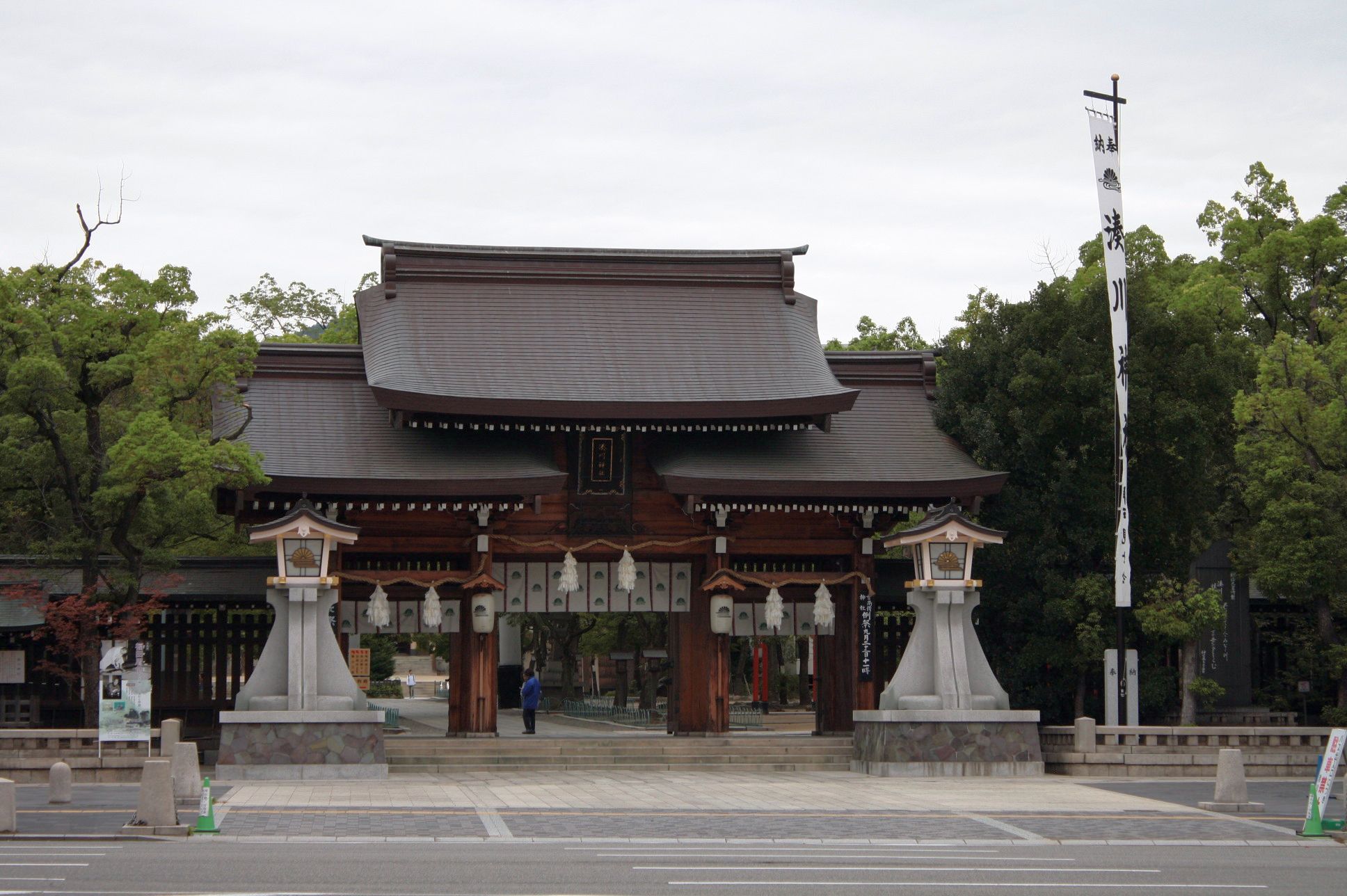Im Schrein wird Kusunoki Masashige (Pseudonym „Dai Nanko“) verehrt. Der Schrein hat eine kleine Gartenanlage mit weiteren kleineren Schreinen. Auf dem Gelände und am Schrein war es ruhig und idyllisch. Es ist auch deshalb so ruhig, da hauptsächlich einheimische Besucher herkommen. Als ich dort war, fand zu diesem Zeitpunkt eine Zeremonie statt. Welche Zeremonie dort stattfand, kann ich leider nicht beantworten. Zum Abschluss des Ausflugs hatte ich mir noch ein Restaurant gesucht und mir was zum Mittagessen bestellt.
