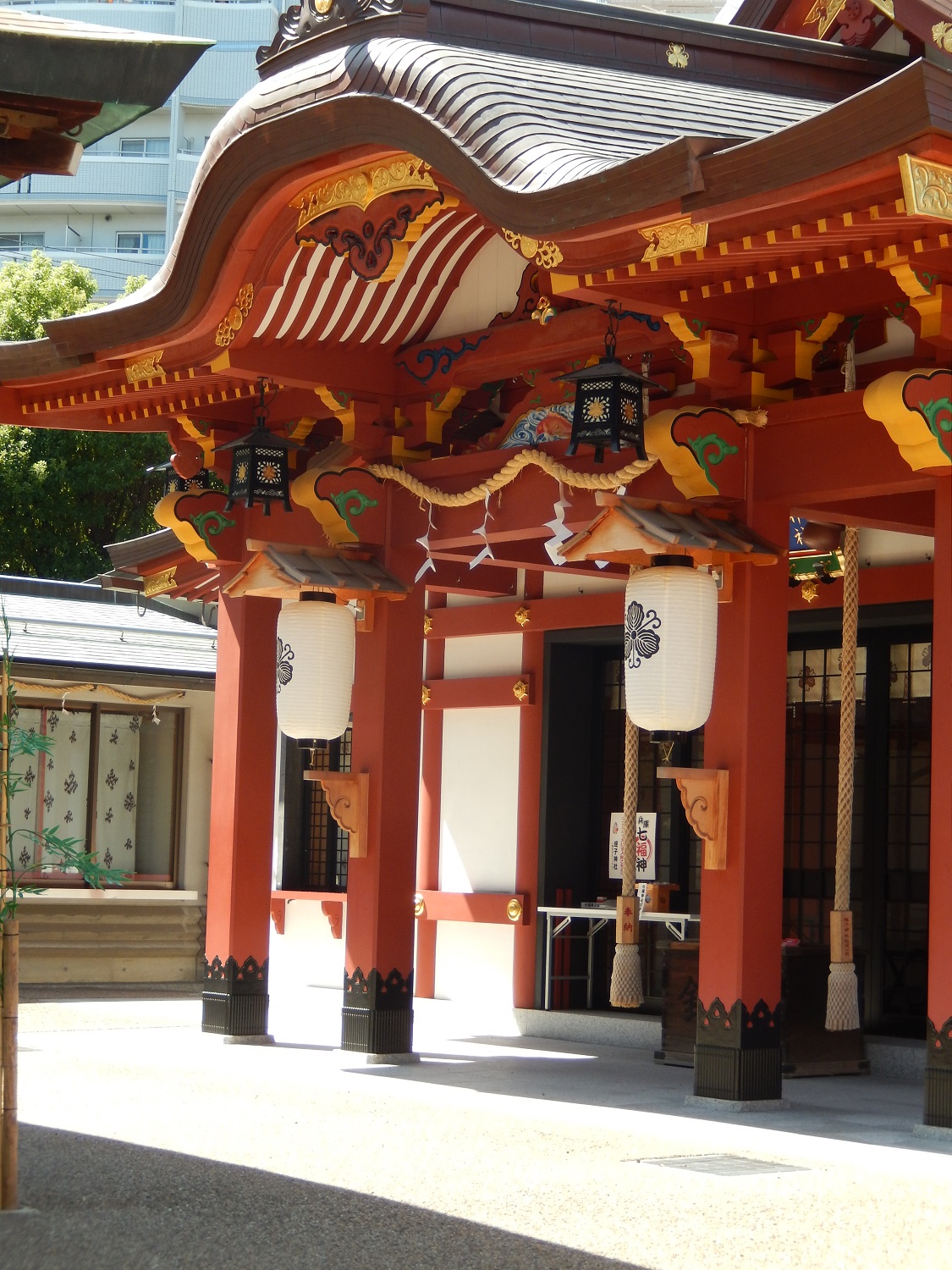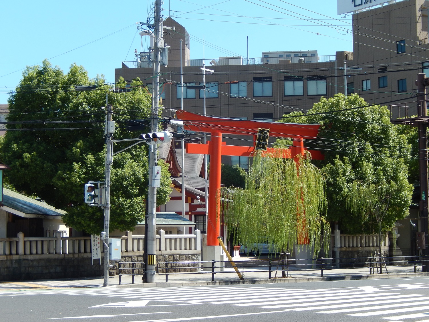 Mein Weg führte mich als erstes zur Nada Bahnstation. Hier stieg ich den Zug und fuhr bis zur Station Hyogo. In einem Conbini kaufte ich mir noch etwas Proviant. Dann bin ich auf gut Glück losgelaufen, da ich keinerlei Hilfsmittel dabei hatte, um mich zu orientieren. Als erstes sah ich einen kleinen Schrein. Dieser heißt „Yanagihara Ebisu Schrein“. Der Gott, der in diesem Schrein lebt, heißt Ebisu. Liebevoll wird er auch Ebessan genannt. Er ist bekannt für wirtschaftlichen Erfolg und bringt Sicherheit in die Familien. Es gibt sogar ein Fest zu Ehren von Ebisu, dieses findet am neunten, zehnten und elften Januar statt.