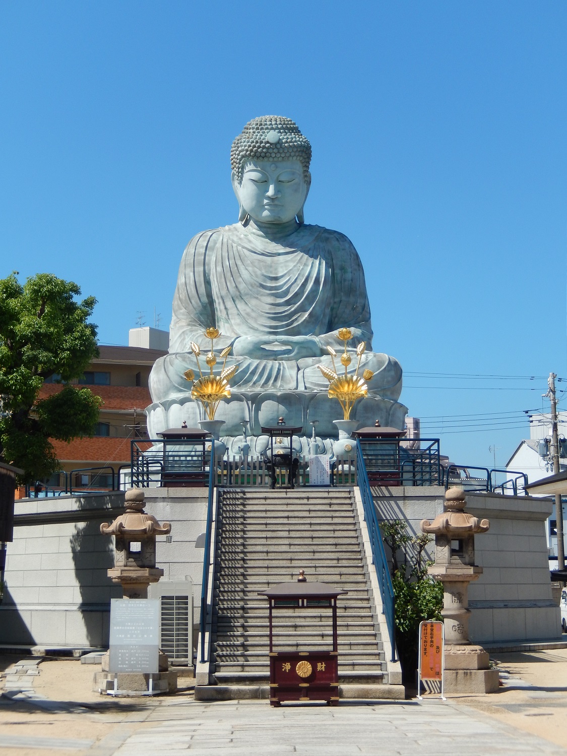Nach dieser Besichtigung machte ich mich wieder auf den Weg zu meinem eigentlichen Ziel. Nach ca. zehn Minuten erreichte ich dann auch den blauen Buddha (Hyogo Daibutsu). Der Buddha gehört zum Nofukuji Tempel und ist einer der größten Buddhas Japans. Hier auch ein interessanter Internetartikel über Riesen-Buddhas.