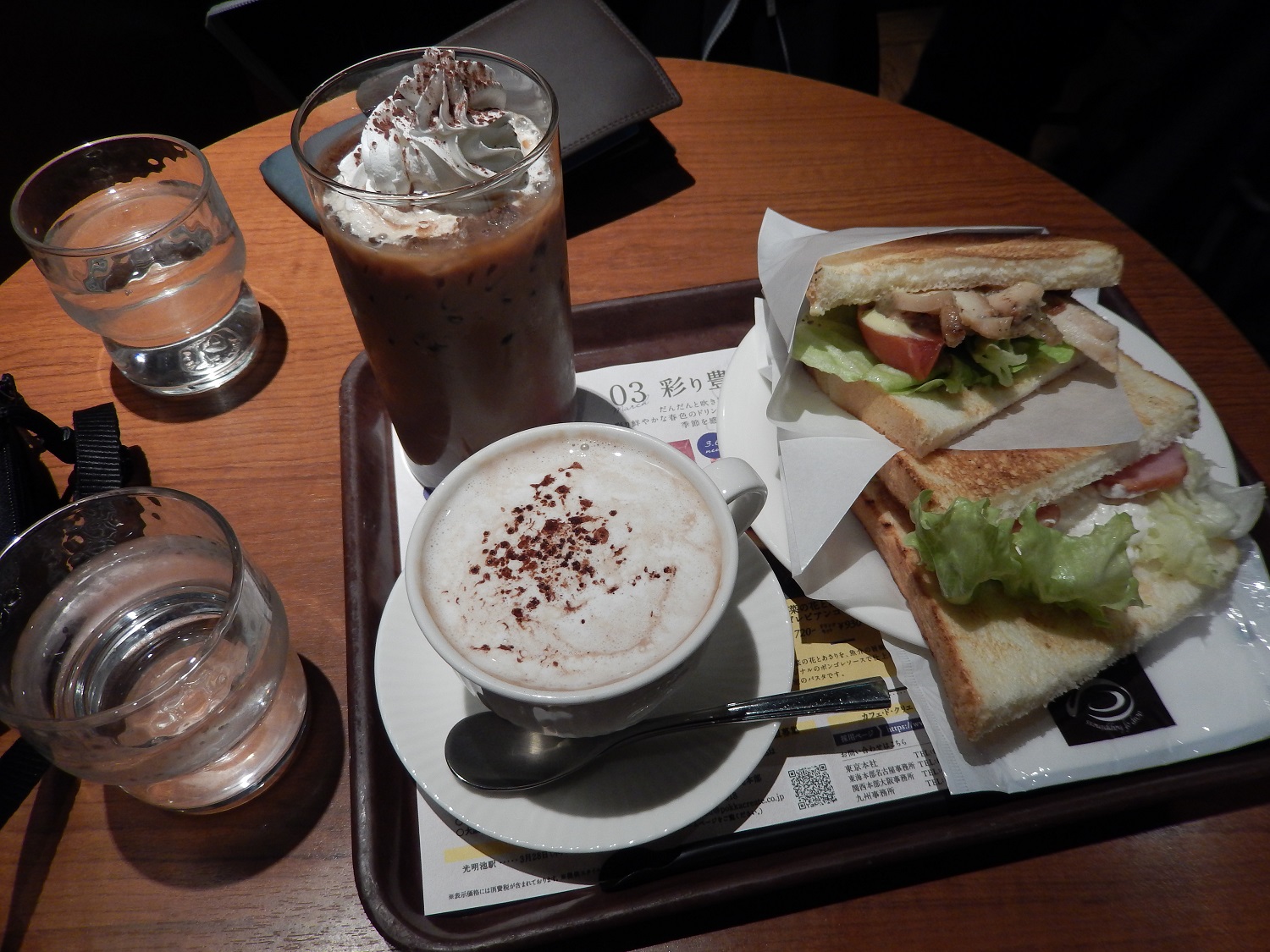 Danach sind wir noch etwas auf dem Campus-Gelände herumgelaufen und haben festgestellt, dass die Kirschblüten sich langsam öffnen. Zudem haben wir uns ein Softeis gegönnt und hatten überlegt, was wir als Nächstes tun. Die Entscheidung viel auf Kobe-Sannomiya. Wir wollten noch etwas Einkaufen gehen und einen Happen essen. Also machten wir uns auf den Weg nach Sannomiya. Wir fanden am Eingang der Einkaufspassage ein nettes Café. Im Café bestellten wir uns dann Kaffee (kalt und warm) und zwei leckere Sandwiches. Als wir fertig mit dem Essen waren, sind wir zu meinem Lieblingsladen gegangen. Dieser ist zwar ziemlich klein, aber wenn man Souveniers sucht, besonders traditionelle Gegenstände oder hergestellt in Japan, ist man hier genau richtig. Zum Abschluss des Tages sind wir noch zum Hafen gegangen und haben uns den Sonnenuntergang angeschaut.