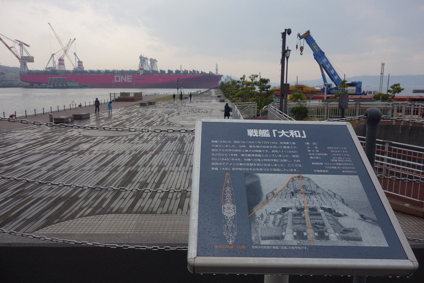 Im angrenzenden Gelände ist ein Wellenbrecher derart gestaltet, dass man auf ihm einen Teil des Decks der Yamato „begehen“ kann. Es verdeutlicht ganz gut die Ausmaße dieses Koloss! Doch die Zeit der Schlachtschiffe war vorbei als es gegen Ende des Krieges geopfert wurde. Ein sinnloser Angriff sollte die Ehre der Marine retten und kostete doch nur viele Menschenleben.