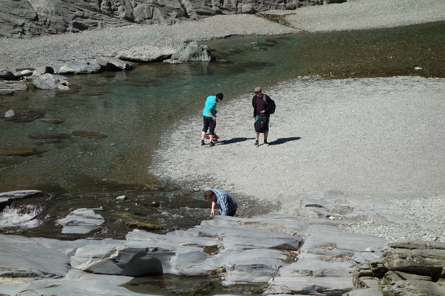 Danach sind wir hinunter zum Flussbecken gegangen und mussten sogar noch etwas klettern, um das Flussbecken zu erreichen. Dann wurde erst einmal die Wassertemperatur mit unseren Füßen getestet. Es war wirklich kalt, aber erfrischend. Im Flussbecken hatten wir noch ein paar Steine gesammelt für einen guten Freund in Dresden. Angeschaut hatten wir uns auch noch einen kleinen Wasserfall, bevor wir Richtung Auto gegangen sind. Am Parkplatz angekommen gab es noch die Möglichkeit etwas zu essen, Souvenirs zu kaufen und die Toilette aufzusuchen.