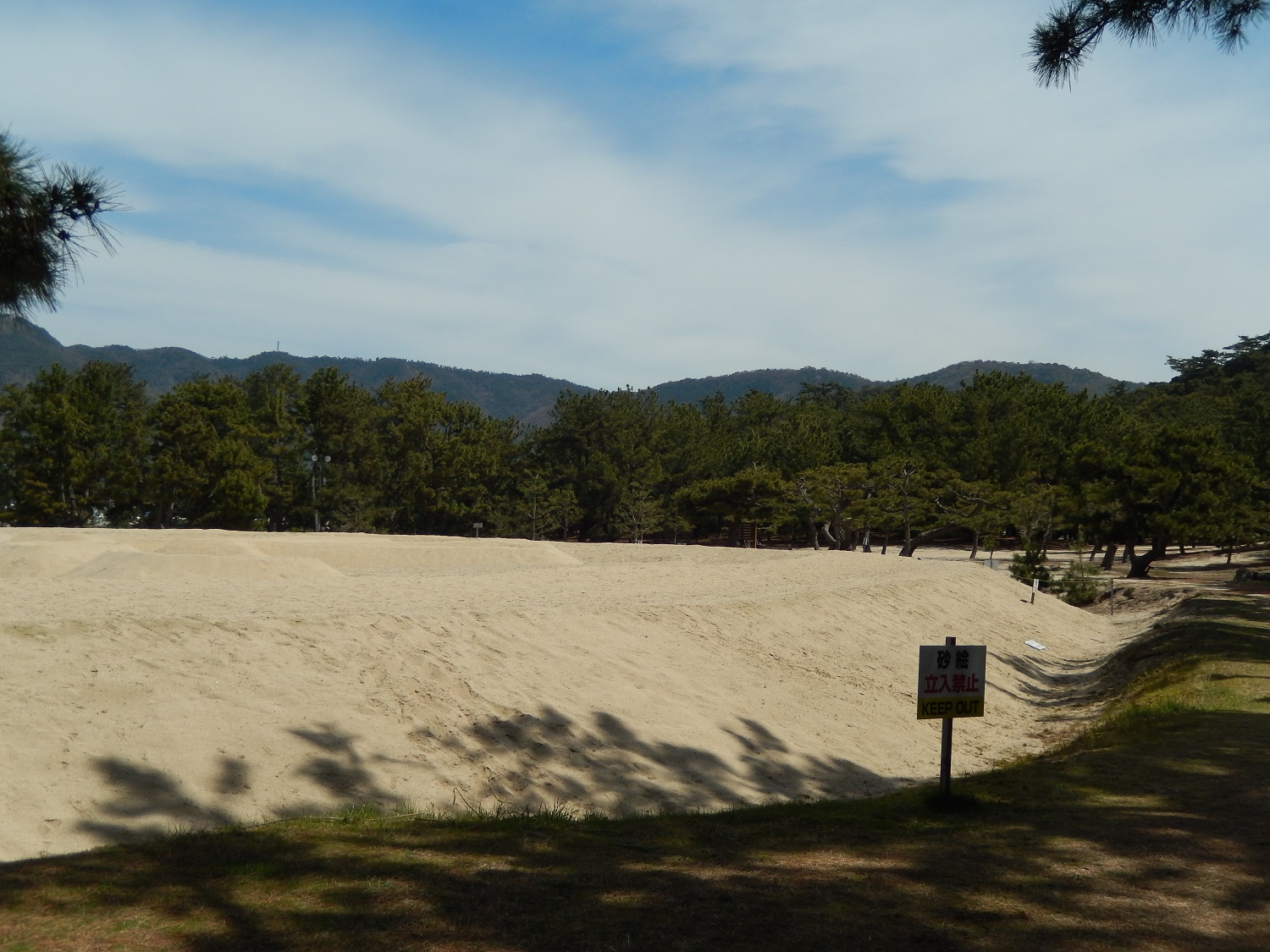 Dann sind wir zum Zenigata Sunae gelaufen. Es handelt sich um ein Sandbild, die eine Münze abbildet. Am besten sollte man zum Aussichtspunkt laufen, damit man die gesamte Größe des Sandbildes sieht. Wir hatten uns dieses Kunstwerk aus Sand nur von der Nähe angeschaut, da wir nicht so viel Zeit hatten.