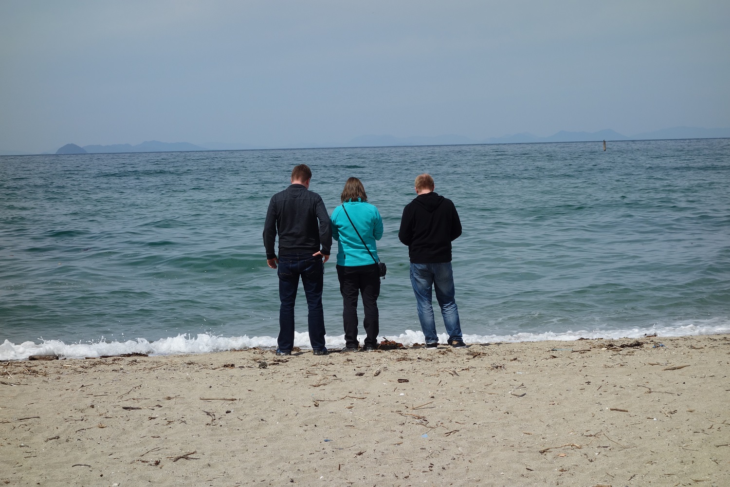Bevor es Richtung Autovermietung ging, sind wir noch zu einem Nahe gelegenen Park „Kotohiki“ gefahren. Aber zuerst hatten wir uns von unserem Airbnb Vermieter und seiner Frau verabschiedet. Wir hatten sogar noch ein kleines Geschenk erhalten. Auch ein Gruppenfoto zum Abschied darf nicht fehlen! Wir hatten eine schöne Zeit in dieser traditionellen Unterkunft. Trotz aufkommender Erkältung.