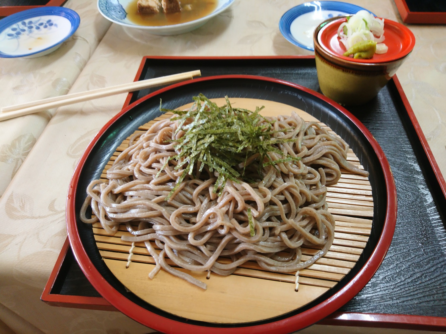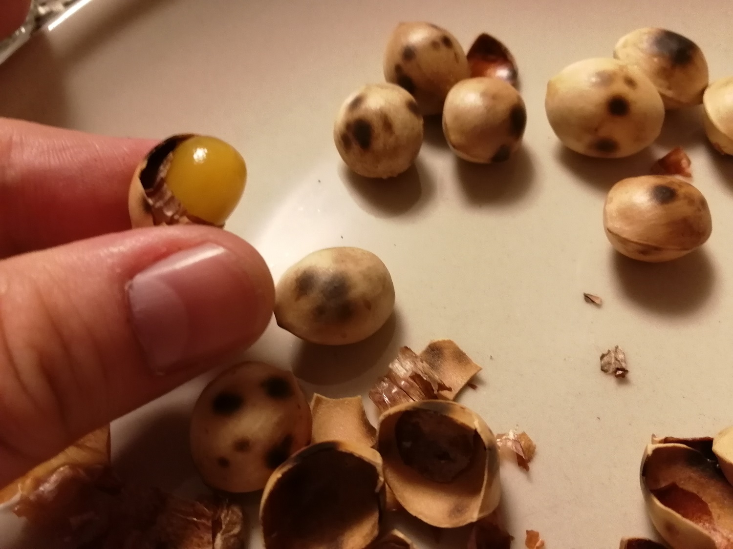 Nach der Besichtigung des Tempels haben wir etwas zu mittag gegessen. Auf den Weg zurück zum Bahnhof war ein Restaurant. Hier konnten wir auch gleich sehen, was es zu essen gab, da das Essen ausgestellt war. Für mich gab es Soba. Bei den Anderen gab es z.B. Curry-Udon. Als Vorspeise wurde uns Oden gereicht. Alles sehr lecker! Wir waren danach satt und überlegten, was wir als nächstes machen wollen. Bevor es mit unserer Besichtigung weiter ging, hatte sich Andy noch ein paar Früchte vom Ginkgobaum gekauft. Diese Früchte kann man essen, wenn man sie in einer Pfanne erwärmt. Ich fand sie jetzt nicht so lecker.