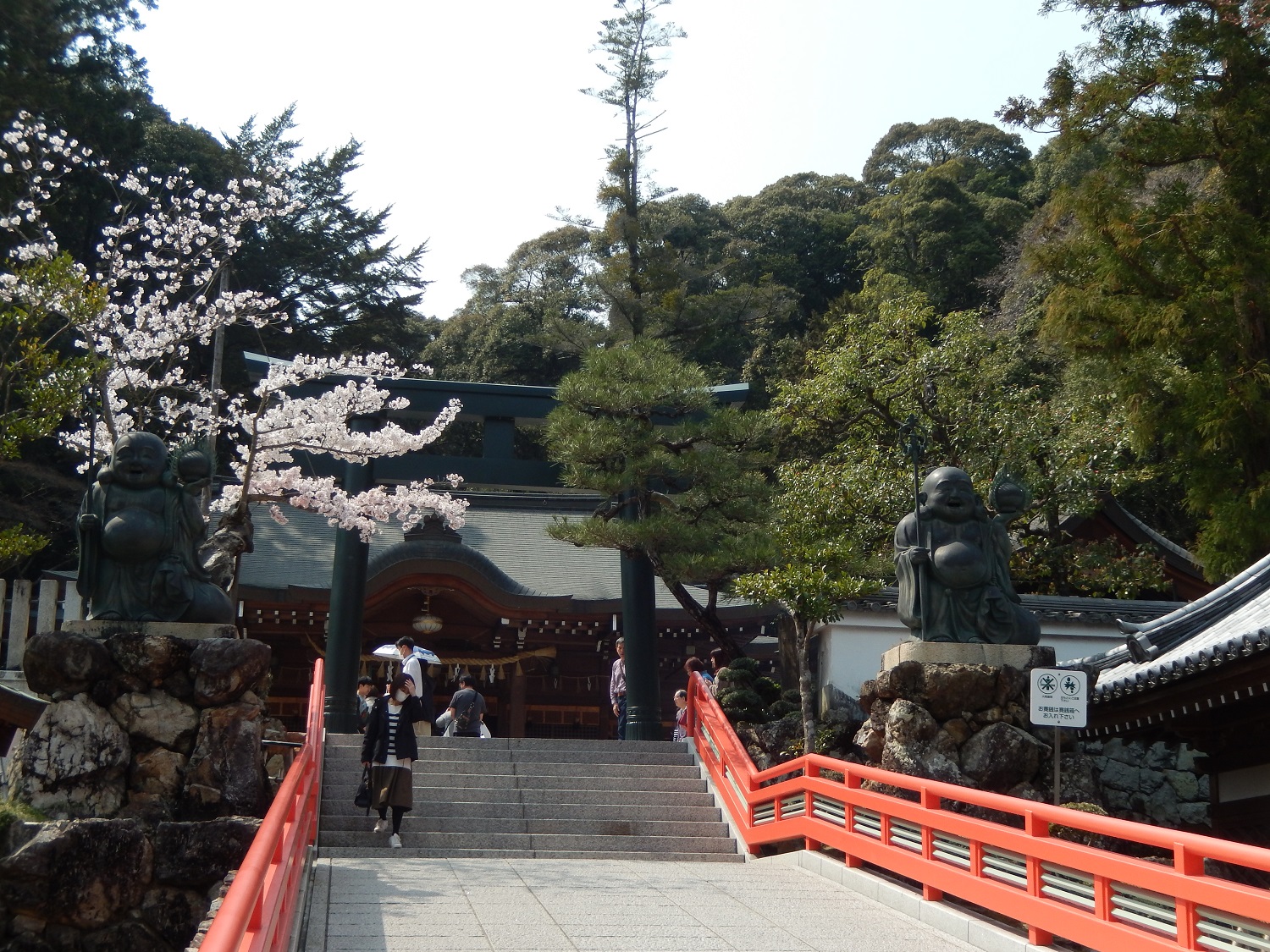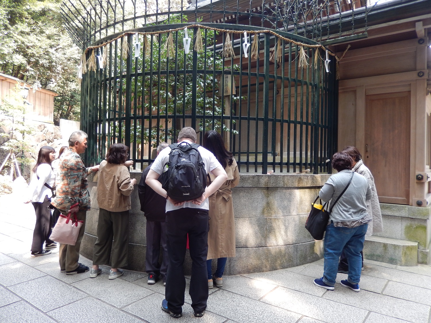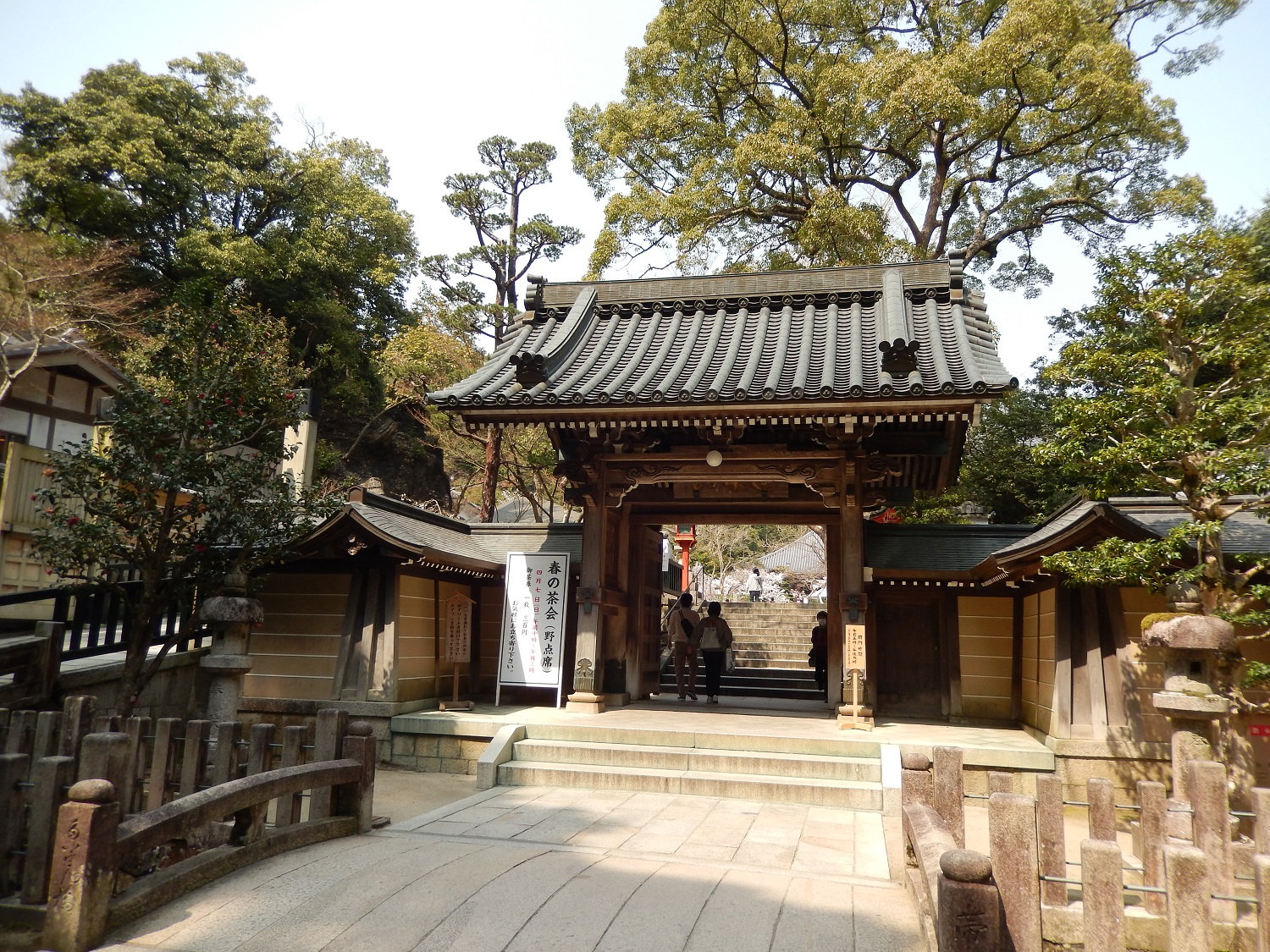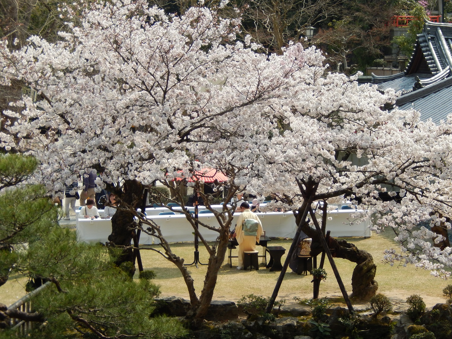 Das Wetter war traumhaft! Am Tempel angekommen konnten wir die blühenden Kirschblüten sehen. An diesem Tag fand ein spezielles Grüntee-Event statt. Dieses Event sah interessant aus, besonders da alles so förmlich war.