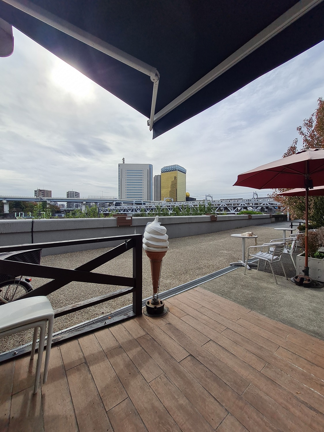 Ausgeschlafen habe ich mich nicht gefühlt, aber es war deutlich besser als nach dem langen Flug. Als wir alle abmarschbereit waren, suchten wir uns etwas Leckeres zum Frühstück. Fündig wurden wir am Fluss Sumida. Es gab Kaffee und Sandwiches. Nach diesem Frühstück waren wir gestärkt und konnten uns Asakusa bei Tag anschauen.