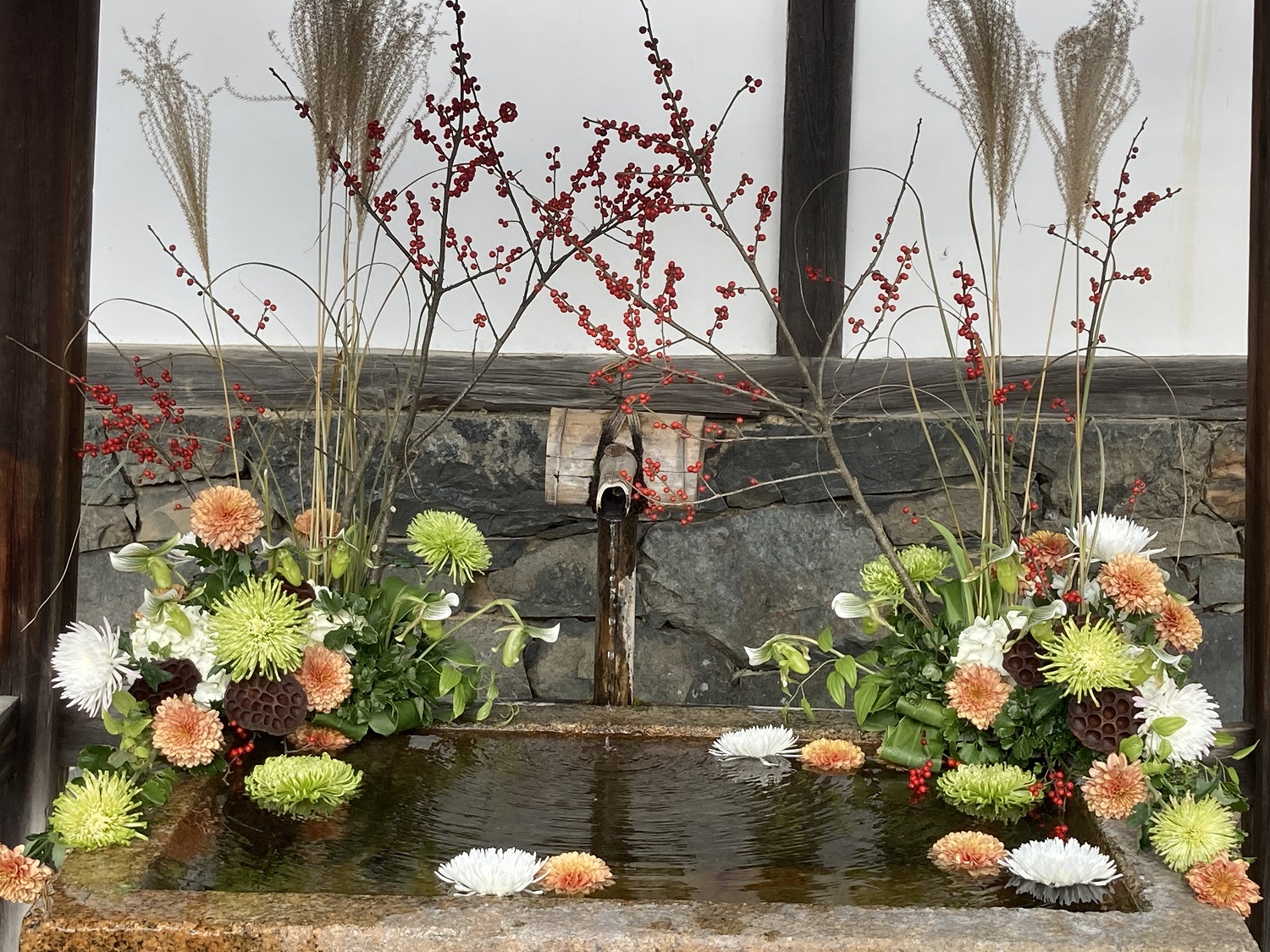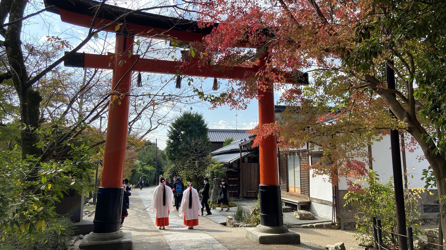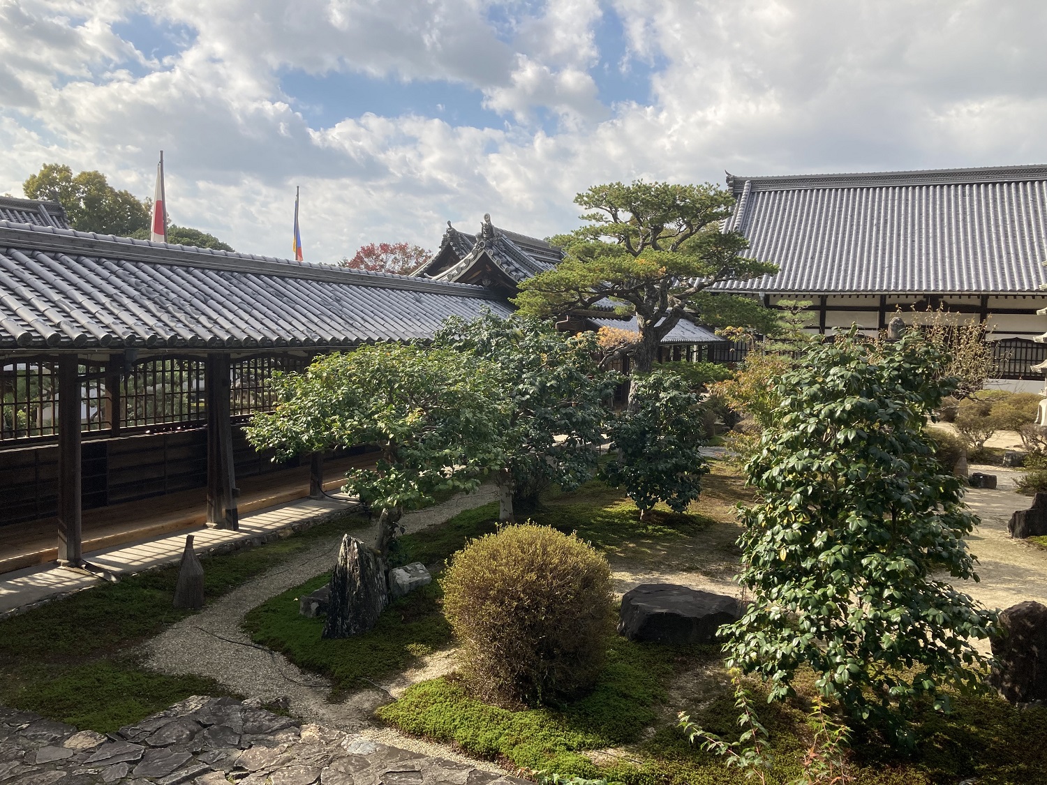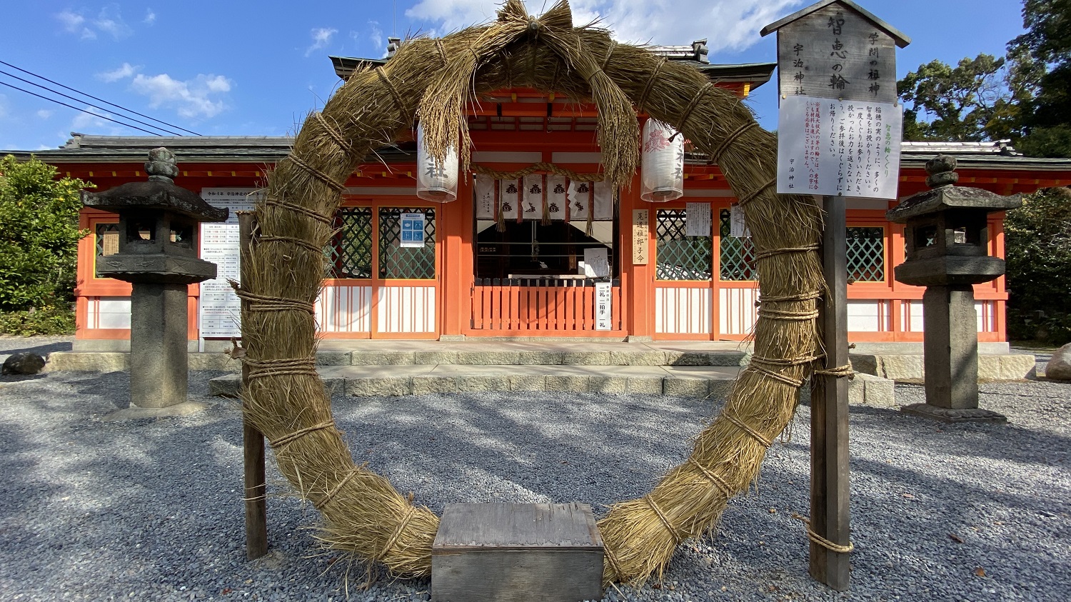 Als erstes besuchten wir den Ujigami-Schrein und den Uji-Schrein. Hier ließen wir uns für ein paar hundert Yen Goshuin zeichnen (Erklärung Goshuin) und kauften einige Omamori. Ein paar Schritte weiter erreichten wir den Kōshō-ji Tempel. Dieses Mal zahlten wir Eintritt, da eine Festivität stattfand. Ein älterer Wachmann half uns bei unserem Gruppenfoto. Auch bekam ich eine Yuzu-Frucht vom Tempelgarten von ihm geschenkt. Unglaublich nett!