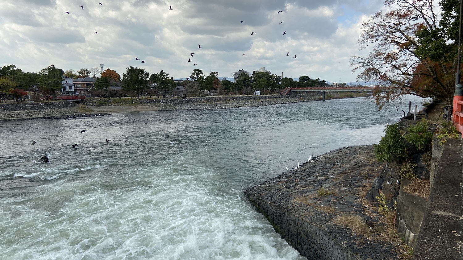 Gefrühstückt wurde heute in der Unterkunft. Danach ging es zur JR-Station Osaka. Wir fuhren mit dem Zug bis zur Kyoto Station. Hier mussten wir einmal umsteigen in die Nara Linie. Am Ziel angekommen liefen wir zuerst über die Uji-Brücke zu einem bekannte Teeladen „Tsuen Main Branch“. In diesem Teeladen hatten wir auch auf unserer letzten Reise 2019 Grüntee gekauft. Das machten wir dieses Mal auch!